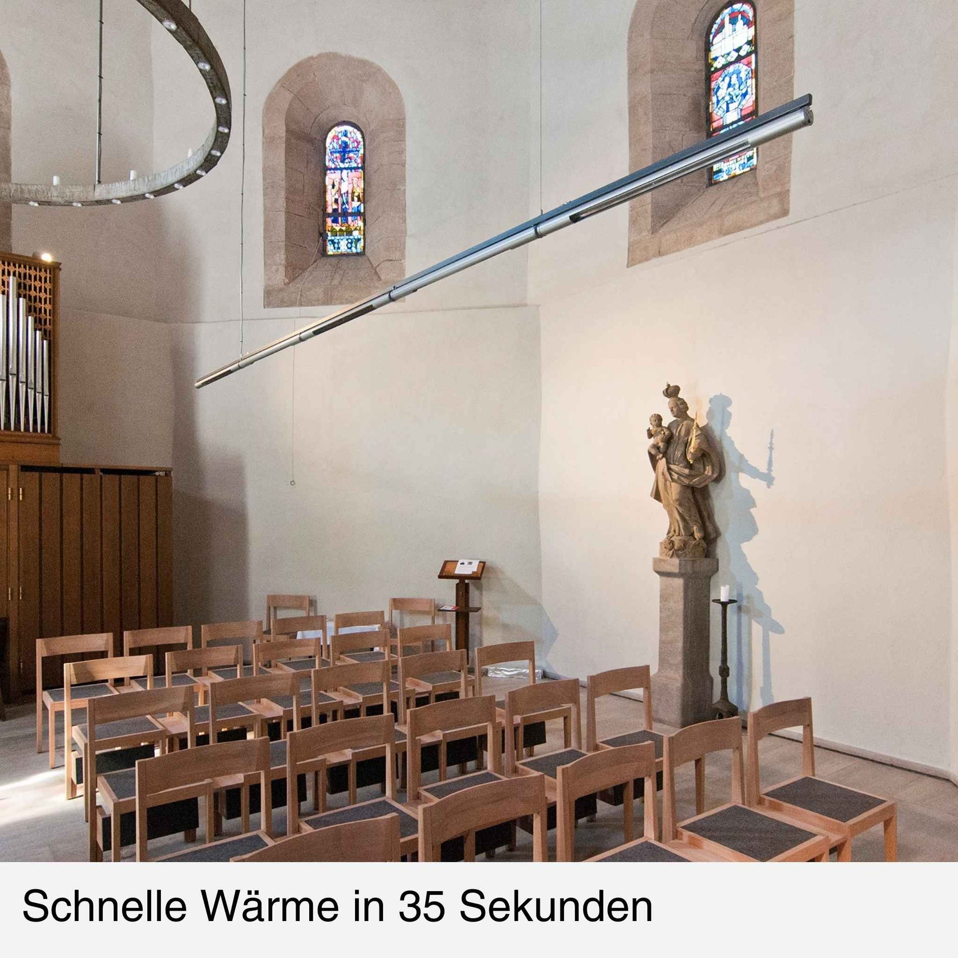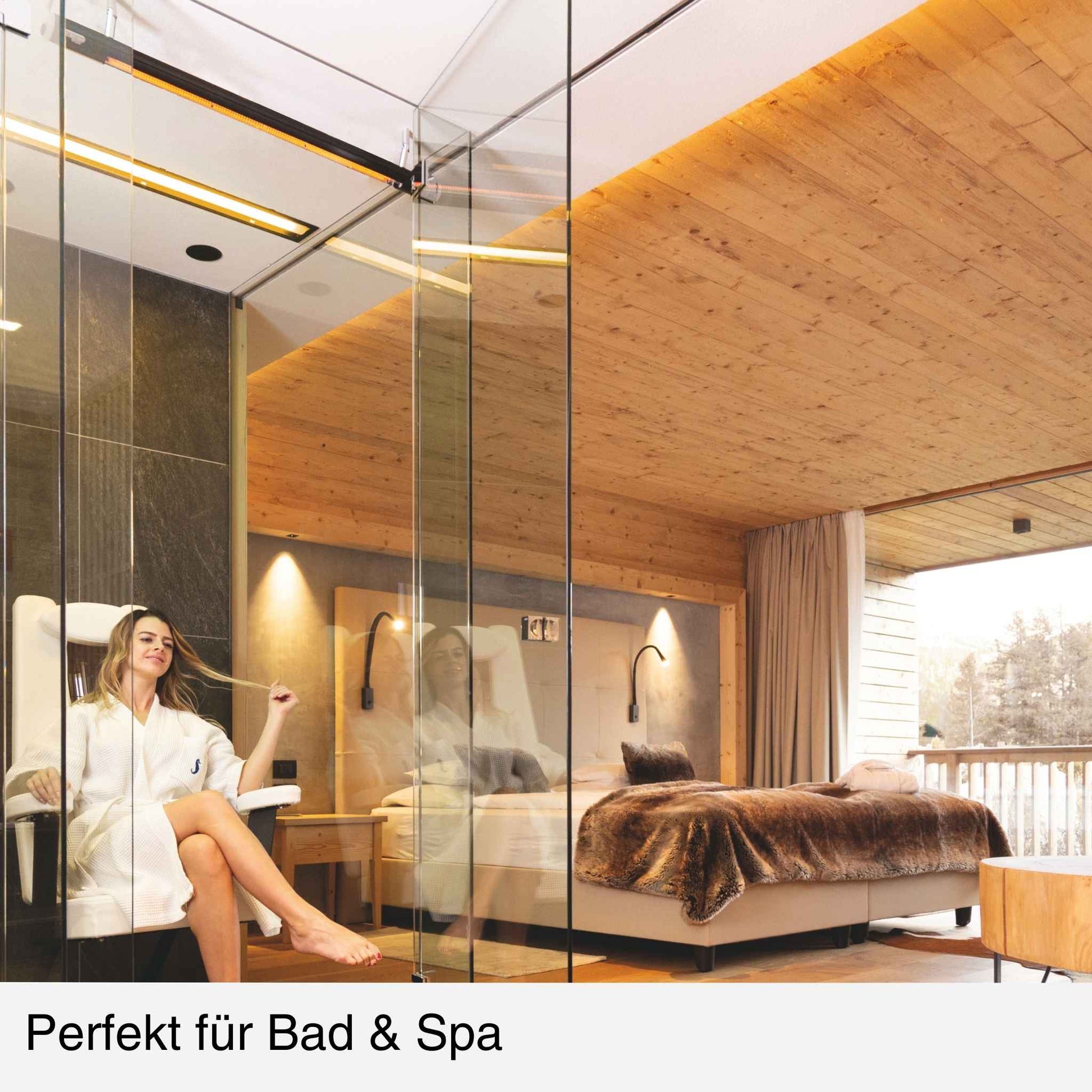 - kraftvolle Carbon-Rotlicht-Wärme, die direkt Personen & Sitzbereiche erwärmt