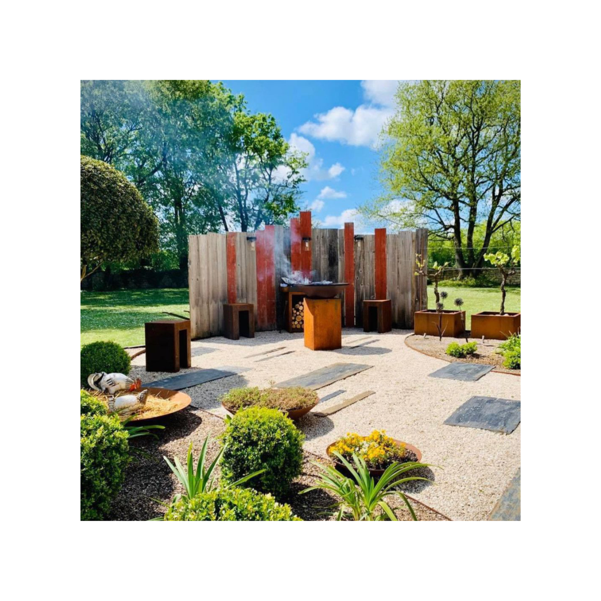 Der OFYR Classic 85 ist in Cortenstahl oder Black Steel erhältlich. Cortenstahl entwickelt eine natürliche, langlebige Patina und ist besonders pflegeleicht. Die Black-Ausführung wirkt modern und minimalistisch, ist jedoch etwas pflegeintensiver und anfälliger für Kratzer – hier empfehlen wir die Verwendung einer Abdeckung.