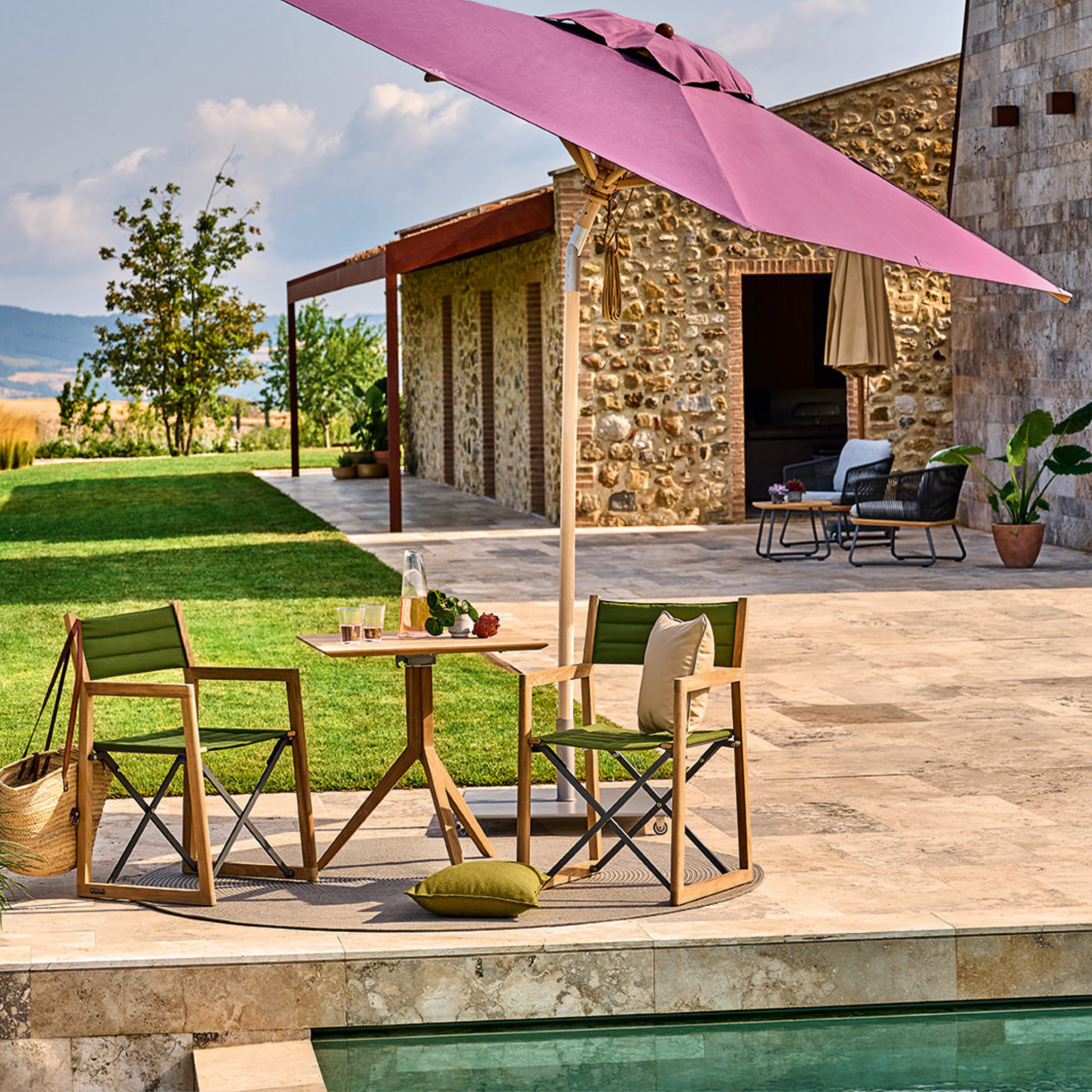 Der Teppich ist Teil der Weishäupl Accessoires-Linie und harmoniert perfekt mit Lounge-, Ess- und Schirmserien – für ein stimmiges Outdoor-Wohngefühl.